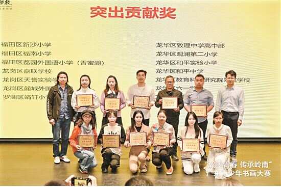 颁奖典礼现场,117家单位获颁“突出贡献奖”,143位教师获评“优秀指导教师”。罗湖区螺岭外国语实验学校、龙岗区麓城外国语小学等获奖代表纷纷表示,大赛为广大学生提供了展示平台,推动了校园美育与传统文化教育的深度融合。