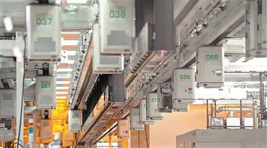 当天下午,调研行来到第三站——位于广州市黄埔区中新广州知识城的粤芯半导体技术股份有限公司(下称“粤芯”)。新快报记者现场看到,在粤芯无尘车间内,一台台天车沿着既定的轨道有条不紊地穿梭,将物料精准地运送到各个工艺流程区域,完成光刻、蚀刻等关键步骤。