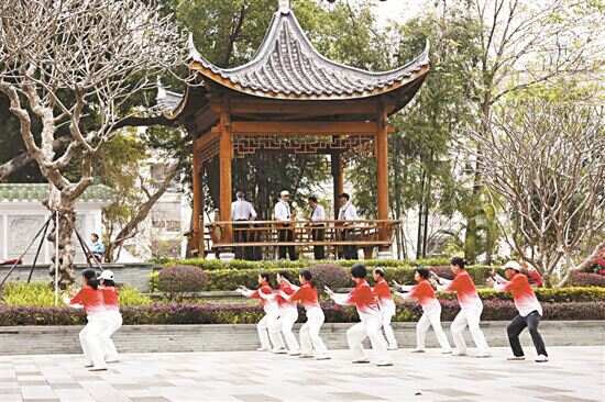为满足老年人多方面、多层次的精神文化生活,长者饭堂二楼的老年活动中心还配置了多媒体报告厅、多媒体娱乐室、综合课室、国标舞厅、文化艺术馆、中医养生馆等活动场室,坚持“中心协调指导、团队自娱自乐、搭建活动平台”的总体思想,积极开展形式多样、内容充实的文娱项目。在工作人员带领下,大家实地观摩了长者们参与到研习课程与太极练习的过程,深切体会到福彩公益项目对银发群体的人文关怀与实质支持。