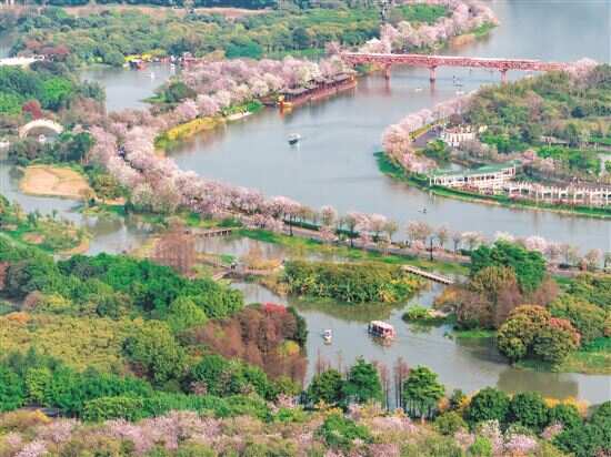 “广州春日天花板”如约而至!3月伊始,广州海珠湿地国家公园的宫粉紫荆如约绽放,石榴岗河沿岸两侧,数千株宫粉紫荆绵延3.2公里,形成一条梦幻的花道。园内有10亩樱花,目前花开面积已过半,将逐步迎来盛花期。此时,木棉花红云璀璨、无忧花明艳动人、黄花风铃木摇曳、玉堂春雍容饱满……