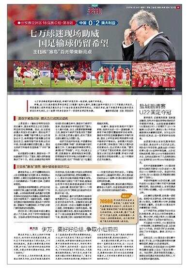 浙江队的小将王钰栋本场比赛也进入了大名单,并且下半时中段替补登场。王钰栋试图利用体能优势突破对手的防线,但因为澳大利亚队在两球领先后就主动收缩防线,把阵型调整为5-4-1,国足的边路突破效率着实有限。即便边路打出配合下到了底线,勉强送出的传中球还是很容易就被对手封出。全场比赛,国足的射门数(11-7)领先,但正让对方门将做出扑救动作的次数却只有一回。