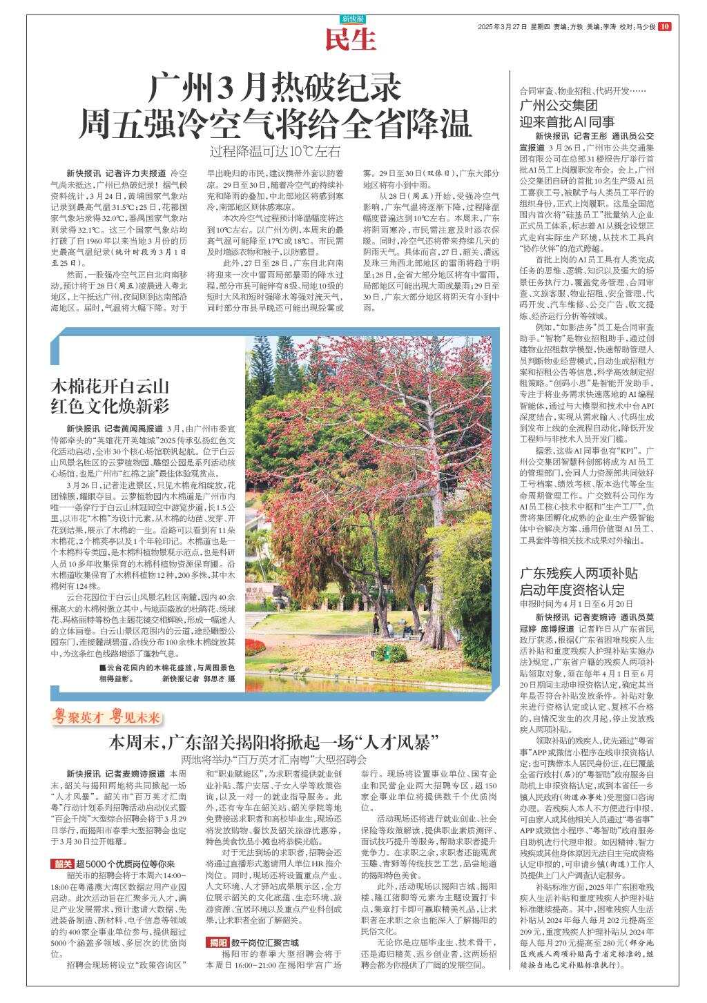 广州3月热破纪录 周五强冷空气将给全省降温