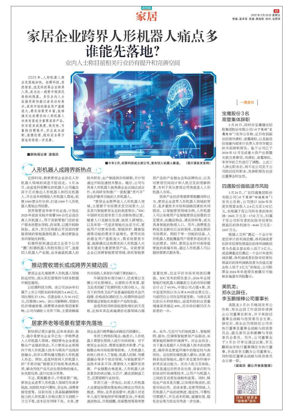 家居企业跨界人形机器人痛点多 谁能先落地?