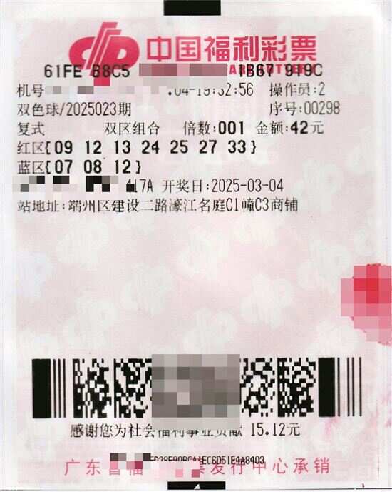 继44171516销售网点中出双色球千万大奖后,仅相隔两天,中国福利彩票双色球游戏第2025023期开奖中,肇庆市又中出1注一等奖,这次幸运站点是位于端州区建设二路濠江名庭的44170430福彩销售网点。