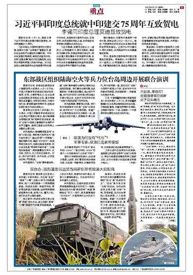 之所以进行这些常态化的演练,就是要让民进党当局和“台独”分裂势力,常态化地感受到解放军捍卫国家主权、反对分裂势力的坚定意志和强大能力。(央视)