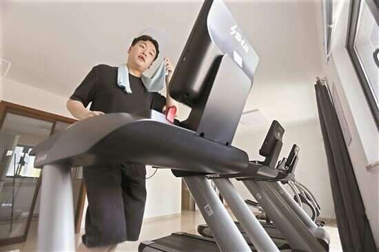 空闲的时候,钟鸣会去人才公寓的免费健身房运动。