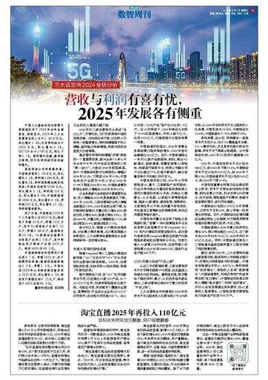 2024年对三家运营商巨头来说“压力山大”,尽管如此,它们仍然取得不错的发展成绩。这体现在多方面,比如收入仍保持一定幅度增长,净利润增幅高于收入增幅,盈利能力持续增强,持续为股东创造更大价值等等。