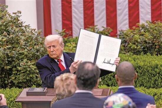 ■特朗普展示所谓“对等关税”的行政令。