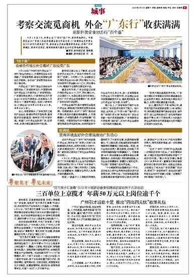 4月1日至3日,外资企业“广东行”在广州、深圳两地举行。中国贸促会与广东省人民政府签署会省合作备忘录,57家商协会及外资企业100余位代表走进广东,参加政企交流会暨投资恳谈会,并到广州市黄埔区、深圳市光明区、前海深港现代服务业合作区等地考察对接。