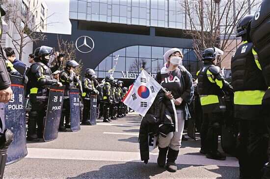 ■尹锡悦的支持者经过韩国首都首尔的总统官邸附近。