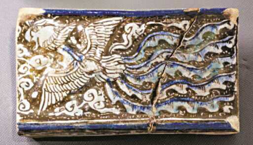 ▲方形凤凰云纹釉砖 陶器 伊尔汗国(公元13-14世纪)德黑兰大学穆卡达姆博物馆藏