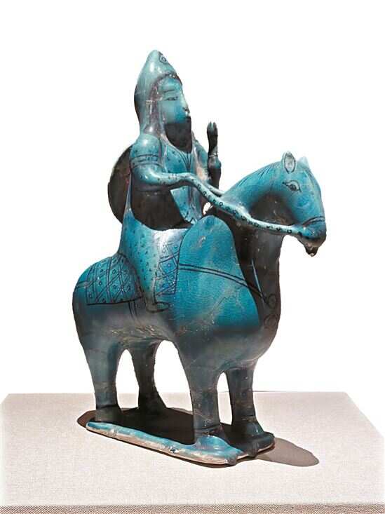 ■绿松石色釉陶骑马人像 陶器 12-13世纪礼萨·阿巴斯博物馆藏。(此种形象在当时很少见,反映了来自东方艺术传统,特别是中国艺术的显著影响。)