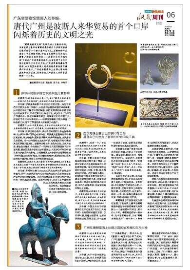 刘冬媚:关于中国与波斯之间的海上交通,贞元宰相贾耽的《皇华四达记》有详细记录,名曰“广州通海夷道”。原书久佚,但《新唐书·地理志》抄录了该书。广州在唐朝是海上丝绸之路的始发港和东方大港,是阿拉伯人和波斯人来华贸易的第一个口岸。据考证,从唐开元时期(713-741年)开始,来往广州港贸易的外国客商每年达80多万人次,其中又以阿拉伯商人(彼时波斯已进入阿拉伯帝国时代)居多。