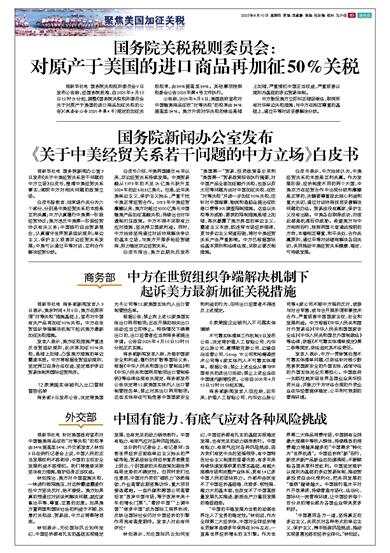 公告称,2025年4月8日,美国政府宣布对中国输美商品征收“对等关税”的税率由34%提高至84%。美方升级对华关税的做法是错上加错,严重侵犯中国正当权益,严重损害以规则为基础的多边贸易体制。