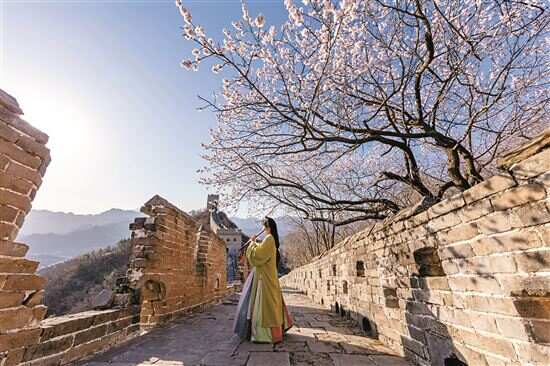 春日里的金山岭,山花遍野,多达万亩的杏花更是沿着雄浑古朴的金山岭长城肆意怒放,历史与现实勾勒出一幅天地有大美的绝妙画卷,恰便是:杏花疏影,也傍野烟发。