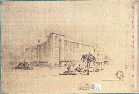第二件档案是《侨光路陈列馆透视图》,它是第一座为广交会量身定做的展馆。