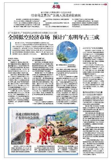 预计到2026年,广东低空经济市场规模将占全国的近三成。