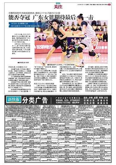 4月10日晚,2024-2025赛季WCBA总决赛进行第三场较量,手握两场胜利的广东女篮未能再次延续神奇表现,以77:96不敌四川女篮。