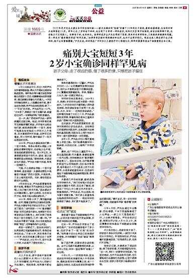 2022年是尹先生夫妻生命中的至暗时刻——被无法确诊的“怪病”折磨了10年的长子浩浩,最终枯萎凋谢,生命的时钟永远停留在13岁。两年之后,2岁的幼子祥祥,也出现了与哥哥一样的症状,他的行为发育开始倒退,语言功能停滞不前,运动能力不及同龄人。世事有不幸,也有幸运。医学的进步让尹先生得到了答案:原来夺走哥哥性命,又染指弟弟健康的恶魔,是一种名为“黏多糖贮积症”的罕见病。“如果哥哥发病时得到确诊和治疗,也许不会离开我们。现在全家人都在拼尽全力救祥祥,绝不让他重蹈覆辙。”尹先生说,祥祥现在广州市妇女儿童医疗中心移植仓内,等待用舅舅的造血干细胞重筑生命之路。
