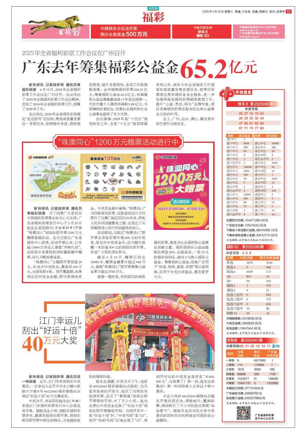 广东去年筹集福彩公益金65.2亿元