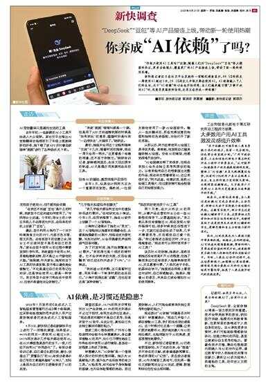 “你每天使用AI工具吗?”近期,随着人们对“DeepSeek”“豆包”等大模型的热议,更多功能强大、覆盖更广的AI产品接连上线,带动了新一轮的使用热潮。