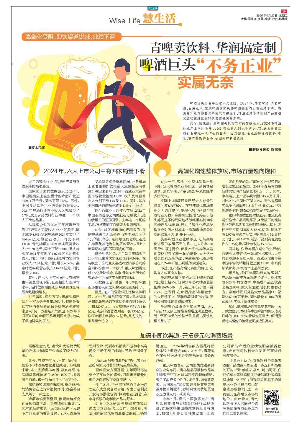 青啤卖饮料、华润搞定制 啤酒巨头“不务正业”实属无奈