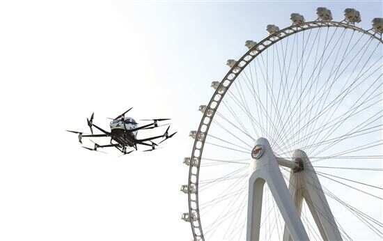 ■在深圳市宝安区城市空中交通运营示范中心,亿航eVTOL航空器进行展示飞行。新华社发