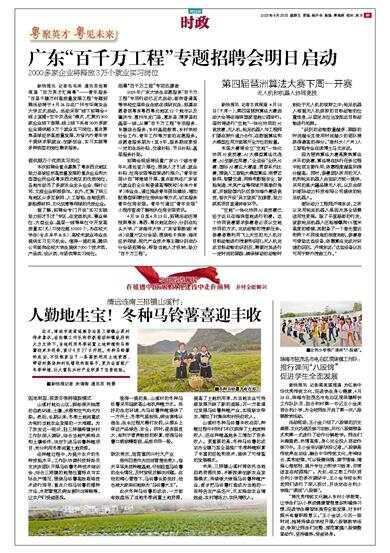 新快报讯 记者毛毛雨 通讯员岳青报道 “百万英才汇南粤”——青年服务“百县千镇万村高质量发展工程”专题招聘活动将于4月26日在广州市华南农业大学正式启动。活动采取“线下招聘会+线上直播+空中双选会”模式,汇聚约300家企业线下参展,线上线下共有2000多家企业提供超3万个就业实习岗位,重点聚焦县域经济高质量发展,为省内外青年学子提供求职就业、创新创业、实习实践等多种类型的岗位需求服务。