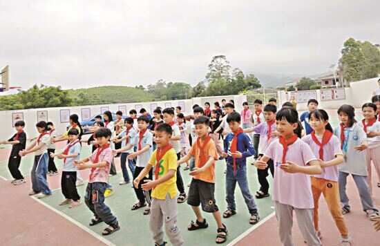 新快报讯 记者梁美琪报道 为弘扬中华优秀传统文化,促进学生身心健康,4月23日,珠海市驻茂名市电白区观珠镇帮扶工作队队员、驻合利村第一书记王小金来到合利小学,为全校师生开启了第一次八段锦教学活动。