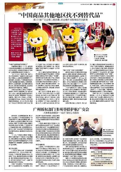 本届广交会期间,广州市版权局组建了37名由版权研究、行政管理、文化执法骨干组成的专家团队,进驻各展馆知识产权和贸易纠纷投诉接待站,确保广交会办展期间的版权纠纷投诉得到及时处理。