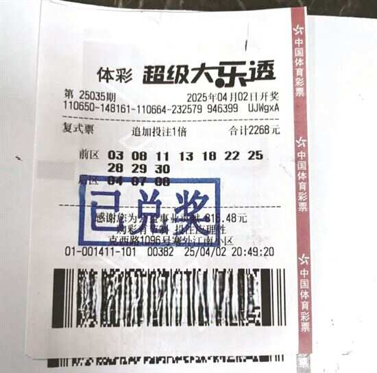 新快报讯 记者陆妍思 通讯员新疆体彩报道 第25035期超级大乐透开奖中,新疆体彩大乐透爆出1注追加头奖。经检索,中奖彩票是一张“10+3”大复式追加票,单票揽奖1871万多元。中奖次日,大奖得主低调现身体彩中心,领走了这笔巨额奖金。有意思的是,中出大奖的乌鲁木齐市克西路1096号塞外江南小区彩票店是当地旺站,早在2018年就曾中出过千万元大奖。两次中大奖,让这家普通彩票店成为无数购彩者心中的“幸运地标”。