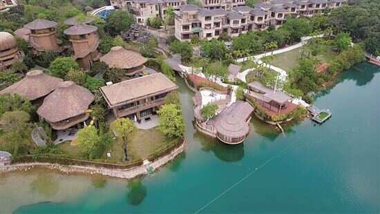 ▲昔日废弃矿坑如今变成亲水旅游景区和高端酒店。