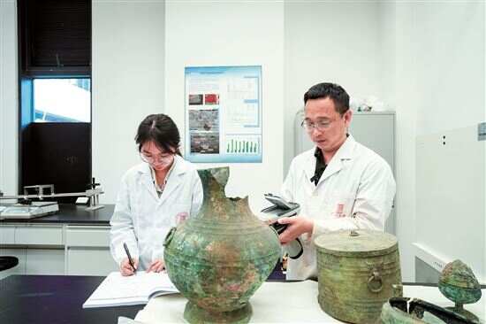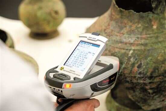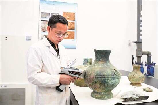 “以前我们分析文物成分时,可能需要对文物进行‘有损取样’。现在我们用便携式X荧光光谱仪,已可以直接在展厅或考古工地现场对文物进行解码。”