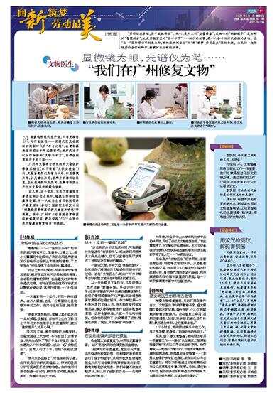 一袭白大褂,手持大型“体温检测仪”,吕良波向记者演示对文物进行无损分析的过程。这位“文物医生”,现为广州市文物考古研究院文物保护科技研究部主任。