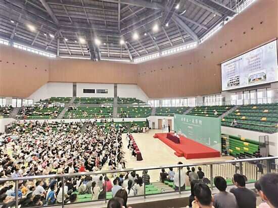 ■华南师范大学附属中学体育馆内,家长和学生齐聚一堂,了解华附招生计划等。