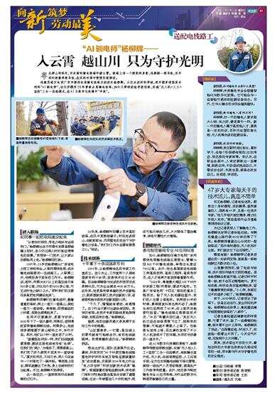 杨柳辉:旧一代的输电人要求胆大心细、体力好,像老黄牛一样。新一代的输电人属于高技能人才,要具备一定的知识,否则无法驾驭激光炮、无人机等先进的检测设备。