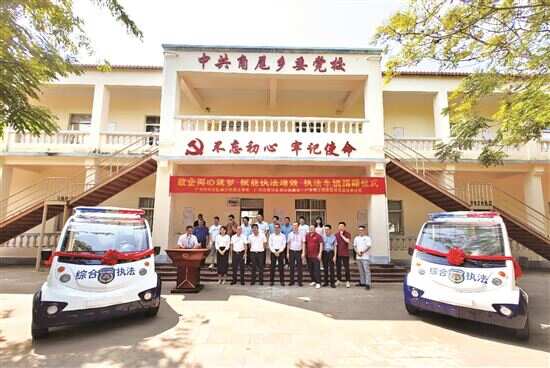 角尾乡位于中国大陆最南端,天气炎热,下雨也是“家常便饭”。但此前,因为资金不足,综合行政执法队只能开着摩托车上路巡逻和执法,饱受日晒雨淋之苦。从工作队口中了解到这个情况后,梁巨峰和南沙街商会一起出资共购买了两辆电动执法车,大大增强了综合行政执法队伍的“硬实力”。从此南沙街的名字就刻在两辆巡逻车上,走到角尾乡的任何一个角落,都“带着南沙街的情怀”。