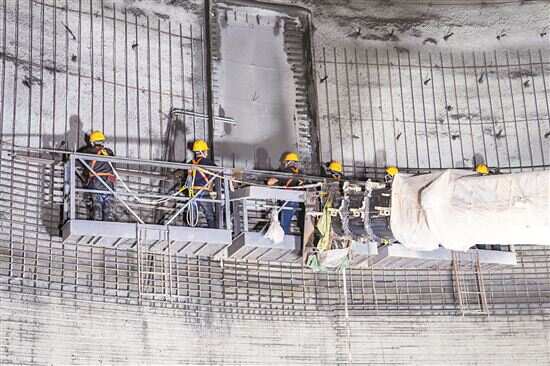 ▲工人在气膜粮仓内部做结构层施工。
