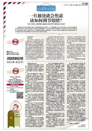本期的来信者自述长期受困于独处引发的焦虑情绪中,每当独自一人时,情绪便陷入低谷,生活动力缺失,对过往的兴趣爱好也难以集中精力投入;唯有与亲友相伴时,焦虑感才能稍有缓解。对于来信人的困扰,华南师范大学心晴热线负责人袁杰分析其可能陷入“焦虑型依恋”模式,并援引存在主义心理学理论给出建议,鼓励其接受“人生本苦”以降低心理预期、通过“带着症状的微小行动”重建生活秩序并借助经典阅读与自我练习等方式直面成长挑战。