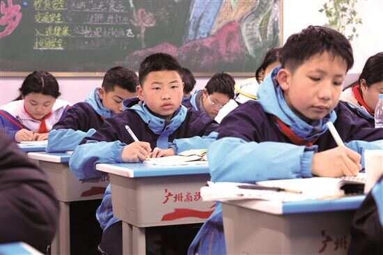 3月11日早上,贵州安顺市西秀区的安运司学校的教室里,孩子们坐在印有“广州南沙爱心捐赠”字样的崭新课桌椅前专心学习,“昨天换上这些新课桌,学生别提多高兴,学习更认真了。”校长胡绪祥看着孩子们满脸笑意。