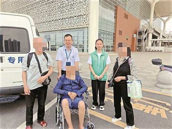 5月初,工作人员陪老人来到医院,为小军办理了出院和离站手续。此时的小军精神状态已有很大好转,但走路仍然比较吃力,工作人员推来为他备好的轮椅,护送父子俩至高铁站乘车,协助其顺利踏上归途。“谢谢政府!谢谢广州市救助管理站的帮助!”告别时刻,小军父亲拉着工作人员的手反复道谢。