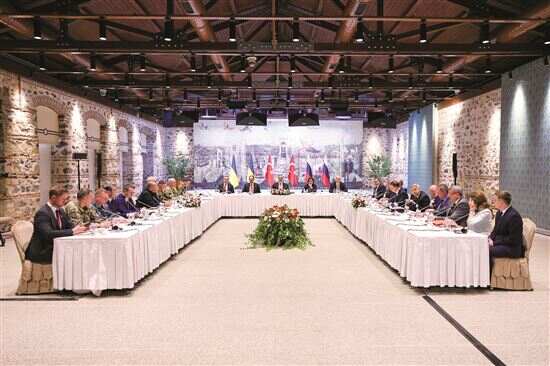 ■5月16日,俄乌代表团在土耳其伊斯坦布尔开始和谈。新华社发
