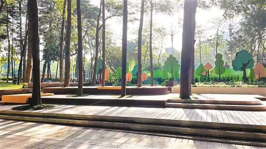 在景观风貌提升方面,本次改造保留了场地内所有成冠乔木,并补植花叶良姜、亮叶朱蕉等植物,促进绿化覆盖率进一步提升,形成层次丰富的立体绿化景观。