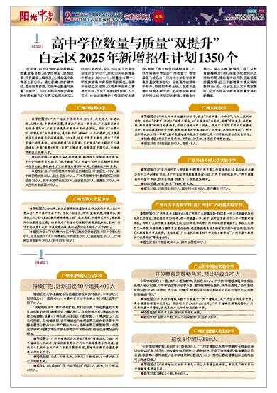 近年来,白云区锚定高中教育高质量发展目标,在学位供给、课程改革、师资建设上精准发力,推动高中教育迈上新台阶。通过新建、改扩建学校,盘活教育资源,实现学位数量与质量“双提升”。2025年利用市移交高职院校场地新开办云英实验同和校区、65中江府校区,全区2025年下达高中招生计划9750个,对比2024年新增高中招生计划1350个,增量全市第一。积极探索高中课程改革新路径,各高中学校立足校情,以培养学生核心素养为目标,开发了涵盖科技创新、人文艺术、社会实践等多个领域的校本课程,构建了多元特色的课程体系。广州市培英中学创办广州市首个“钱学森班”,被选为广州市中小学数学教育高质量发展实验校。全区高考成绩稳中有升,特控和本科上线人数逐年递增且结构不断优化,龙头学校培英中学特控上线率创历史新高,增幅全市第一。深入实施“新强师工程”,以教育家精神为引领,深度优化教师队伍结构布局,推动高中教师队伍建设高质量发展,近三年新增高中事业编制教师835名。白云区正以实干笃定前行,全力书写高中教育高质量发展的新篇章。