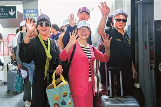 ▲5月19日是第15个“中国旅游日”,银发族游客乘坐高铁快乐出游。