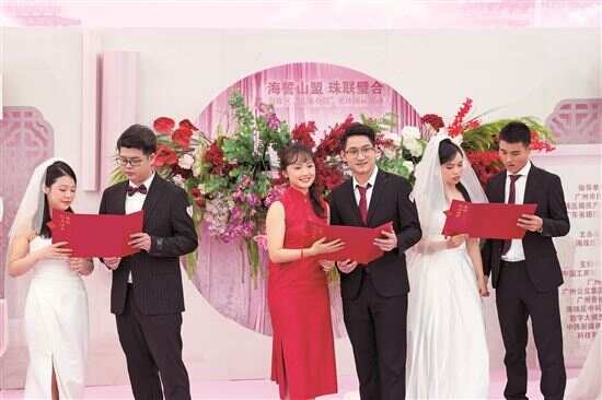 “能够在广州塔上领证,很浪漫也很难忘。”“在客轮上办婚礼,很特别。”5月20日,一场见证海誓山盟的“水陆空”集体婚礼,让新人们纷纷点赞。