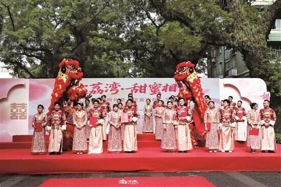 ■5月20日,荔湾区沙面岛上举办主题为“缘定荔湾·甜蜜相伴”520集体婚礼。