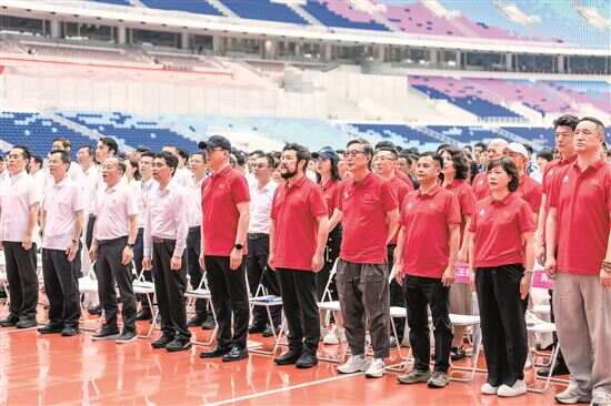 新快报讯 记者高京报道 昨天是距离十五运会开幕还剩173天的日子,虽然天空飘着小雨,但广东奥体中心内部却是火热异常。上午10时30分,十五运会和残特奥会开幕式主创团队进驻大会正式举行,总导演郎昆、艺术总监陈维亚、总监制刘伟强、艺术顾问莫华伦、总制作人王锐祥等主创人员全部亮相,这标志着十五运会开幕式的筹备进入冲刺阶段。