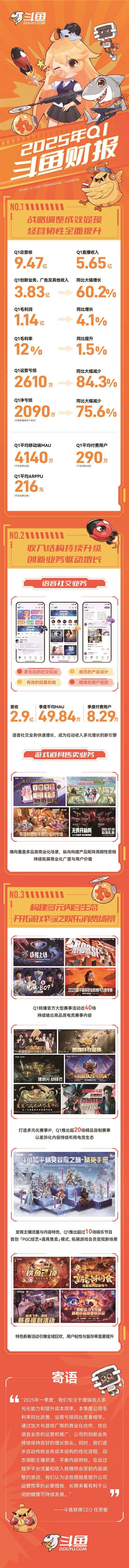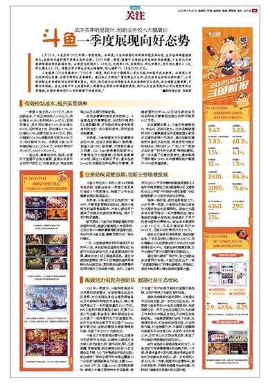 斗鱼联席CEO任思敏表示:“2025年一季度,我们专注于增强收入多元化能力和提升成本效率。本季度公司毛利率同比改善、运营亏损同比显著缩窄。通过加大与游戏厂商的商业化合作,优化语音业务的运营和推广,公司的创新业务持续保持良好的增长势头。同时,我们逐步启动传统业务成本结构的优化进程,动态调配主播资源,平衡内容供给。在此过程中平台流量和收入规模将会受到内容调整的波动,我们认为这些是提升公司运营效率的必要措施,长期来看有利于公司的健康可持续发展。”