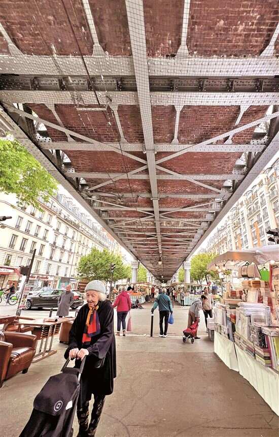 每周三和每周日,是巴黎十五区位于地铁6号线高架桥下的格勒奈尔市集(Marche de Grenelle)开放的时间,高大的桥身如一个“保护神”,让前来逛市集的人们免去了风吹日晒雨淋,甚至给人一种桥底休闲漫步的惬意,手揣在口袋里,慢悠悠地走过一个又一个摊位,新鲜的蔬菜瓜果甚至各色鱼类、虾蟹随之从眼前闪过,法式奶酪与现场正在烹制的饭食香气萦绕鼻端,引人驻足……